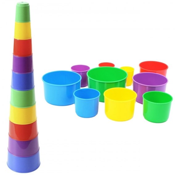 - - Zestaw zawiera 10 różnej wielkości kubeczków do układania.